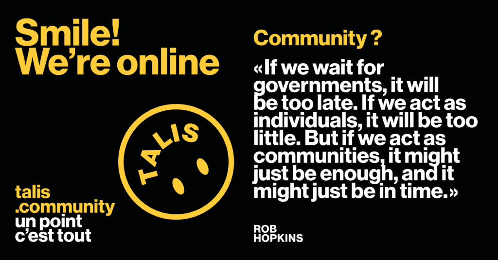 « Si nous attendons les gouvernements, il sera trop tard. Si nous agissons en tant qu’individus, ce sera trop peu. Mais si nous agissons en tant que communautés, cela suffira peut-être, et ce sera peut-être juste à temps. »